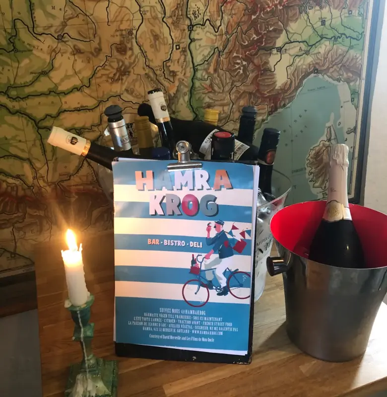Bar Bobo är Hamra Krogs bakficka och vinbar – en plats för spontana kvällar, goda smårätter och spännande viner från vår förlängda vinlista. Här behöver du ingen bokning, utan kan slinka in precis som du är – kanske medan du väntar på ett bord på krogen eller bara vill stanna till för ett glas i gott sällskap. Atmosfären är avslappnad, öppen och lite bohemisk, precis så som vi tänkt oss.